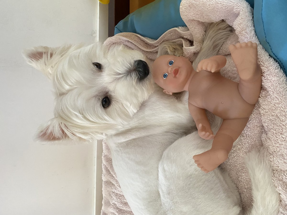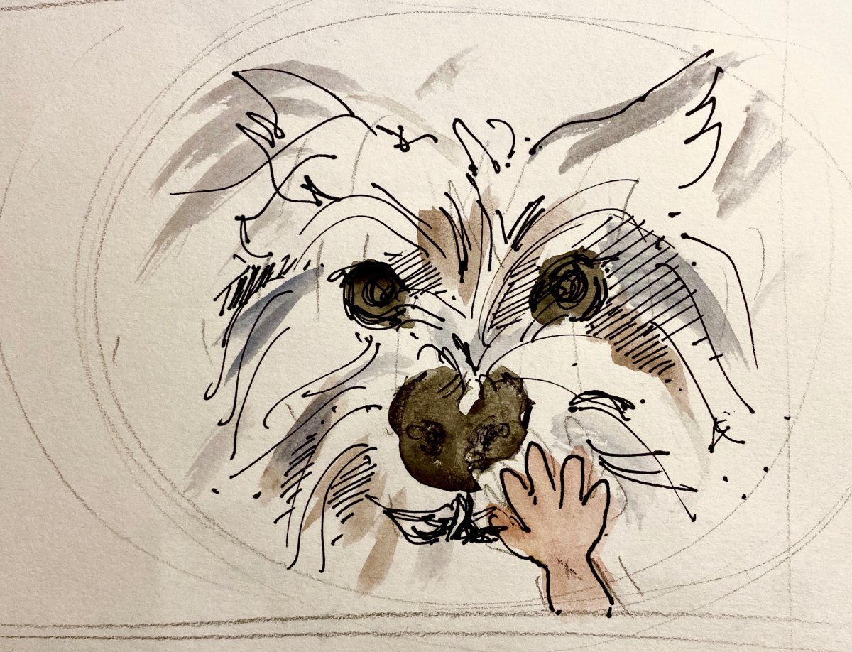 Storyboard: separate shot depicting a baby playing with a dog and experiencing touch