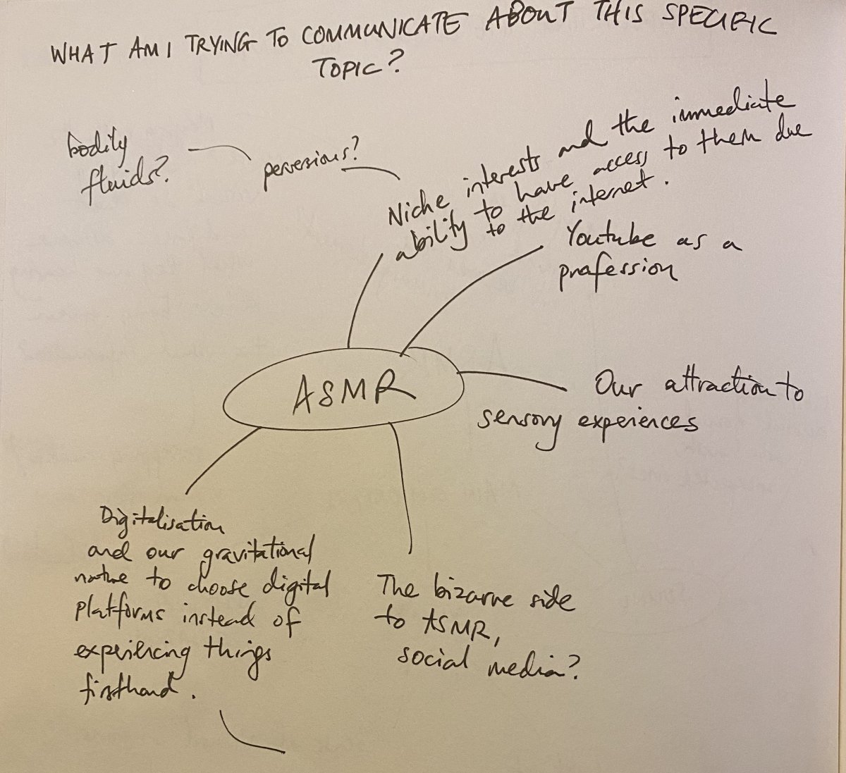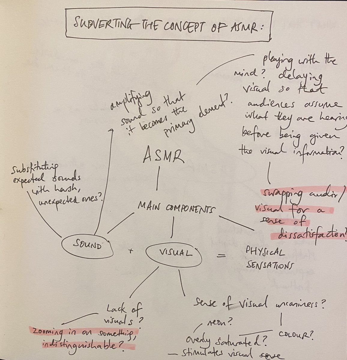My research has begun to focus more around the idea of texture and touch as opposed to all the five senses. One type of texture that I’m fascinated with is slime and the consistency of mud or gooey substances. This has brought me to consider ASMR or autonomous sensory Meridian response. This is where a particular sound stimulates a physical sensation in a persons scalp and moves down the back of the neck and upper spine.