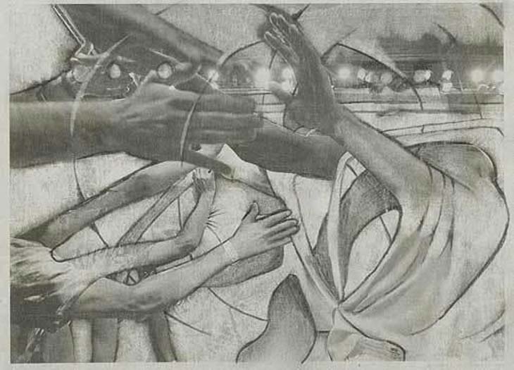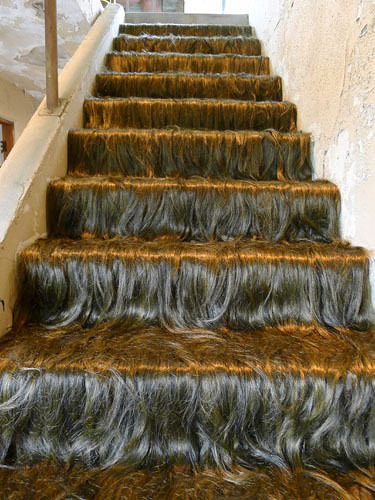 Today's Fine Art 4D workshop gave me the opportunity to carry out some of the more whimsical ideas I came up with. I particularly enjoyed working with film and capturing a sense of uncomfortable uncanniness through motion and sound. Rebecca Horn's Finger Gloves performance piece possesses a similar unnerving, sensory quality that excites me. I have come to realise my fascination with the audience response of feeling uncomfortable after having experienced a piece of artwork. While watching the video of Horn's performance, I found myself feeling both uneasy and enthralled at the same time. The way in which Horn has chosen one small unnerving feeling and exaggerated it using props translates very well into the form of video. I can tell that the length of each 'finger glove' has been carefully calculated so that the tips of each one lightly stratch the surrounding walls as she walks. It almost reminds me of the widely disliked sensation of dragging nails across a chalkboard.