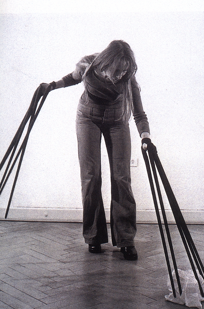 The way Rebecca Horn fuses performance and video art together in her work is something I feel inspired by. To me, this piece, 'Cutting Hair', exists as two forms: one as a performance piece and one as a short film. I like the idea of performing for the camera as a way to connect with an audience because as the performer, there is less room to fear appearing vulnerable. If Horn were to perform this piece in front of a live audience, I feel that it would alter its' intent.